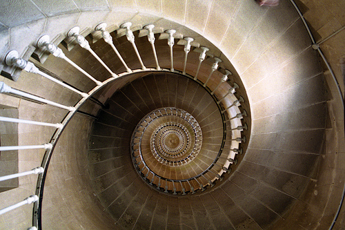 Heaving and puffing, we climbed the 57.10 m to the top, to discover the land and a blue sea stretching gently away from beneath us. On one side was La Tour des Baleines, the old lighthouse. Blue waves pockmarked by gusts of wind flirted with a pebbly beach made golden by the rays of the setting sun. On the other side, white houses with red roofs dotted the sprawling countryside.