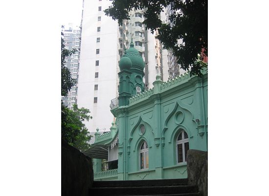 Higher up is the simple green Jamia mosque, which lends its name to Mosque Street. The walled courtyard offers greatly needed space in the crowded constructions of Hong Kong. The environs are quiet and leafy, but the minute I look up, skyscrapers dwarf the clean lines of the minaret.